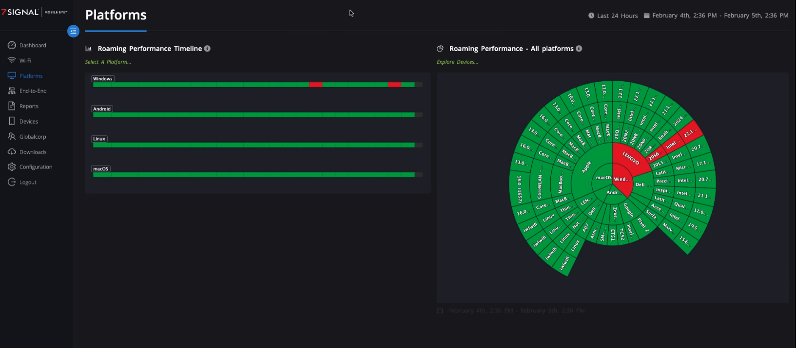 • Platform issues, to specifically detect roaming issues with client devices.