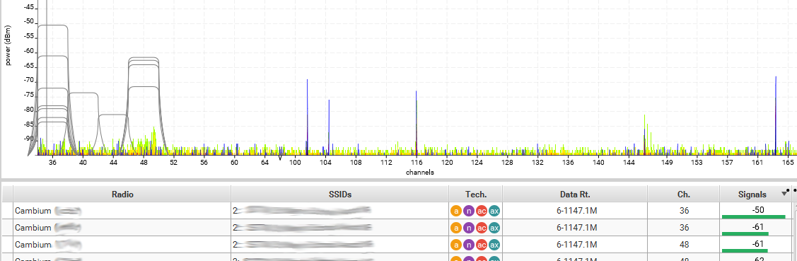 The spectrum analyser is particularly important because it helps to identify all the non-Wi-Fi traffic that is being received by the internal radios. It sweeps up to 25 times per second on both bands at maximum accuracy, which is faster and more accurate than other instruments designed for this purpose.