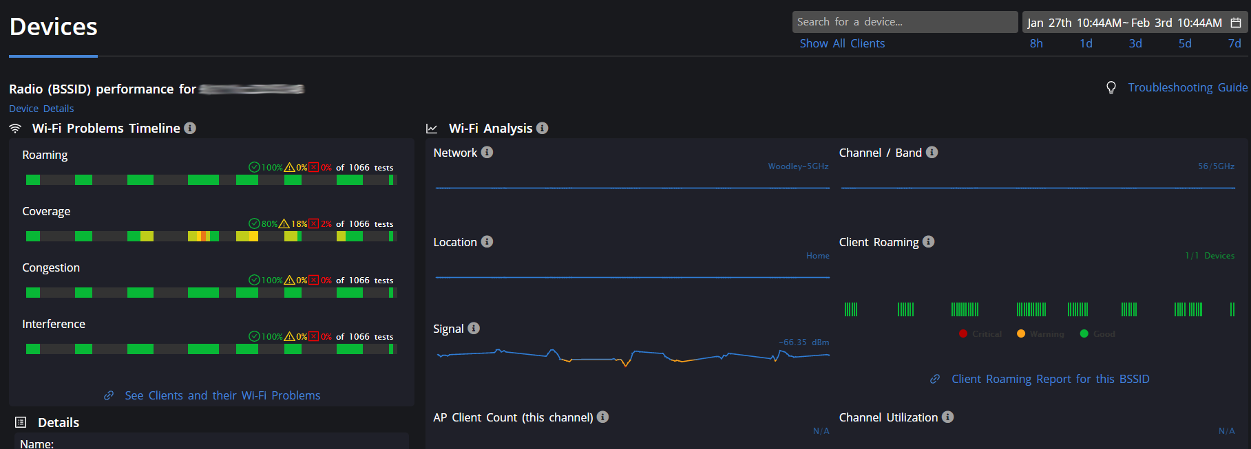 - Platform issues, to specifically detect roaming issues with client devices.